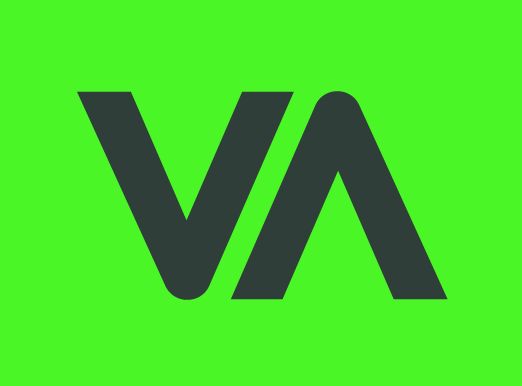 This custom "V-A" ligature serves as a recurring brand motif—appearing as a framing device in UI/UX elements and as a "stamp of integrity" on carbon-offset certificates.